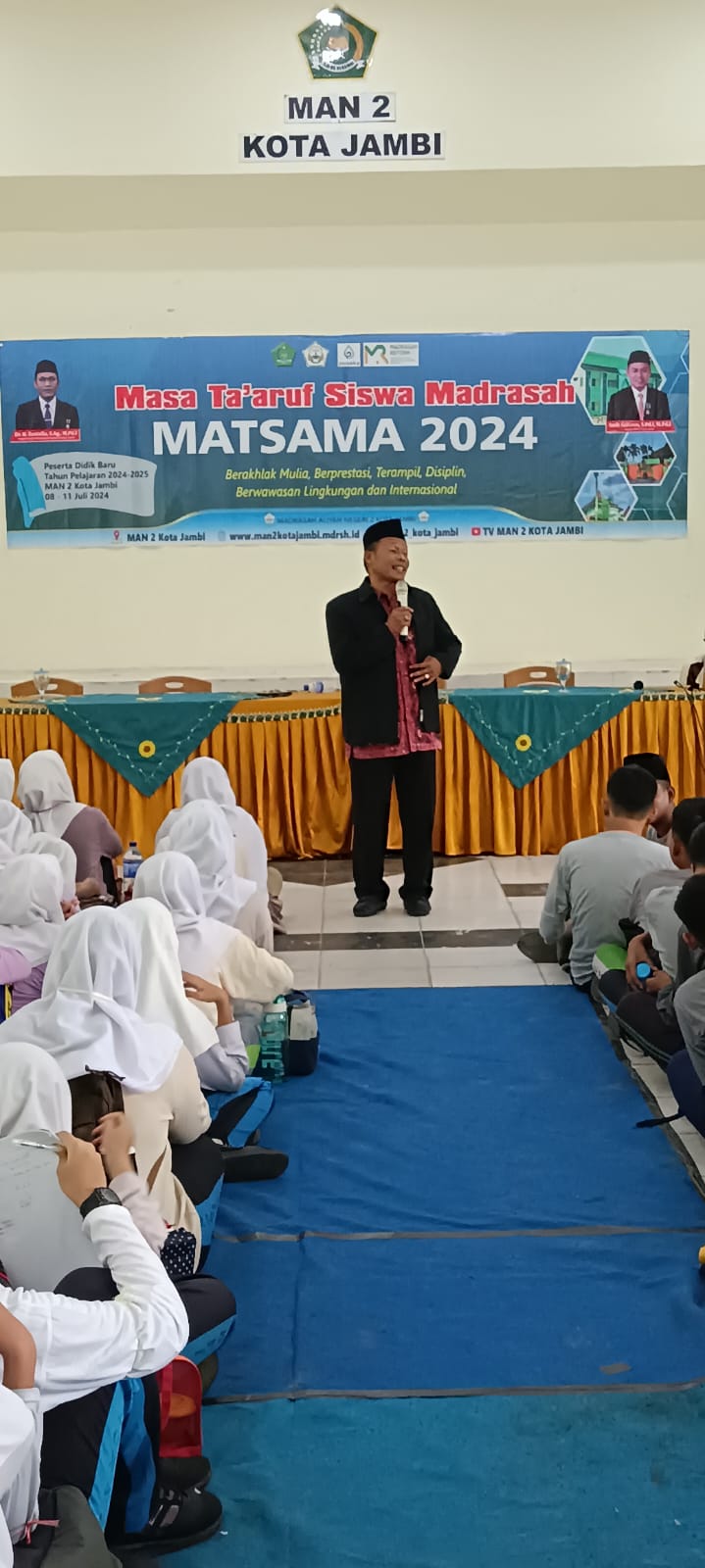 Jambi, 10 Juli 2024 – Dalam rangka kegiatan Masa Ta'aruf Siswa Madrasah (MATSAMA) 2024, MAN 2 Kota Jambi mengadakan kegiatan bertema "Pentingnya Moderasi Beragama" yang bertempat di Aula MAN 2 Kota Jambi. Kegiatan ini dihadiri oleh siswa-siswi baru dan bertujuan memberikan pemahaman mendalam tentang pentingnya sikap moderat dalam beragama.