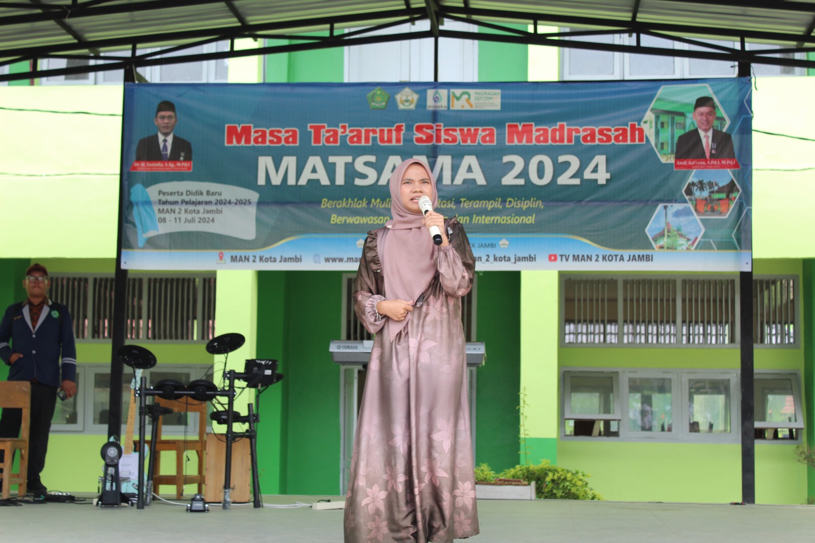 *Jambi, 11 Juli 2024* – Dalam rangka Masa Ta'aruf Siswa Madrasah (MATSAMA) MAN 2 Kota Jambi , Ekskul Keagamaan tampil dengan tausiyah bertema moderasi beragama sebagai bagian dari kegiatan ekstrakurikuler keagamaan. Acara ini selain bertujuan untuk mengisi penampilan ekspo ekskul pada MATSAMA tetapi sekalian menanamkan nilai-nilai toleransi dan moderasi beragama kepada para siswa baru.