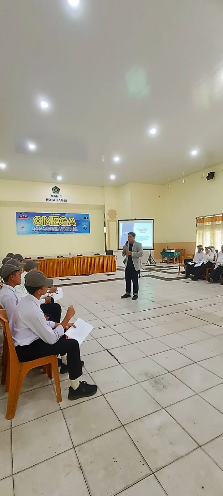 Jambi, 17 Juli 2024 – Memasuki hari kedua Orientasi Murid Kelas Global (OMEGA) di MAN 2 Kota Jambi, para murid semakin antusias dalam mengikuti rangkaian kegiatan yang dirancang khusus untuk menggali potensi kepemimpinan mereka. Orientasi yang berlangsung dari tanggal 16 hingga 18 Juli 2024 ini diisi dengan berbagai aktivitas yang bermanfaat.