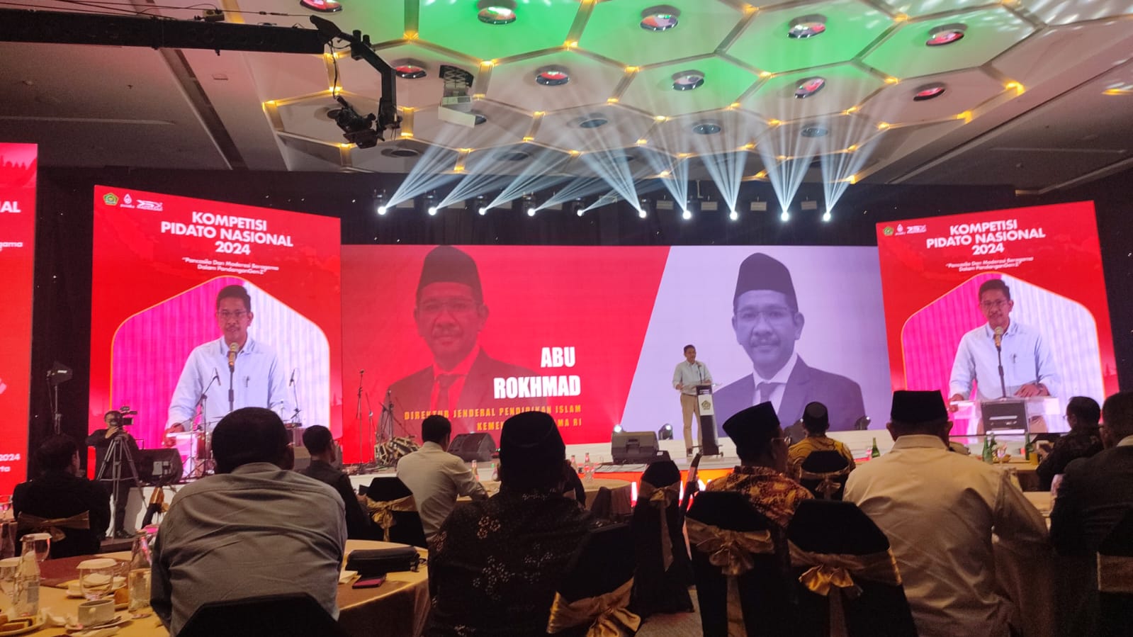 Jakarta, 10 Agustus 2024 – Malam puncak Kompetisi Pidato Nasional 2024 yang digelar di Aula Utama Kementerian Agama RI, Jakarta, berlangsung megah dan penuh inspirasi. Acara ini dihadiri oleh tokoh-tokoh penting, termasuk Menteri Agama RI Yaqut Cholil Qoumas, yang akrab disapa Gus Men, Sekretaris Jenderal Kementerian Agama RI, Dirjen Pendidikan Islam (Pendis) Abu Rokhmad, Direktur Kurikulum, Sarana, Kelembagaan, dan Kesiswaan (KSKK) Ahmad Umar, serta tamu undangan lainnya.