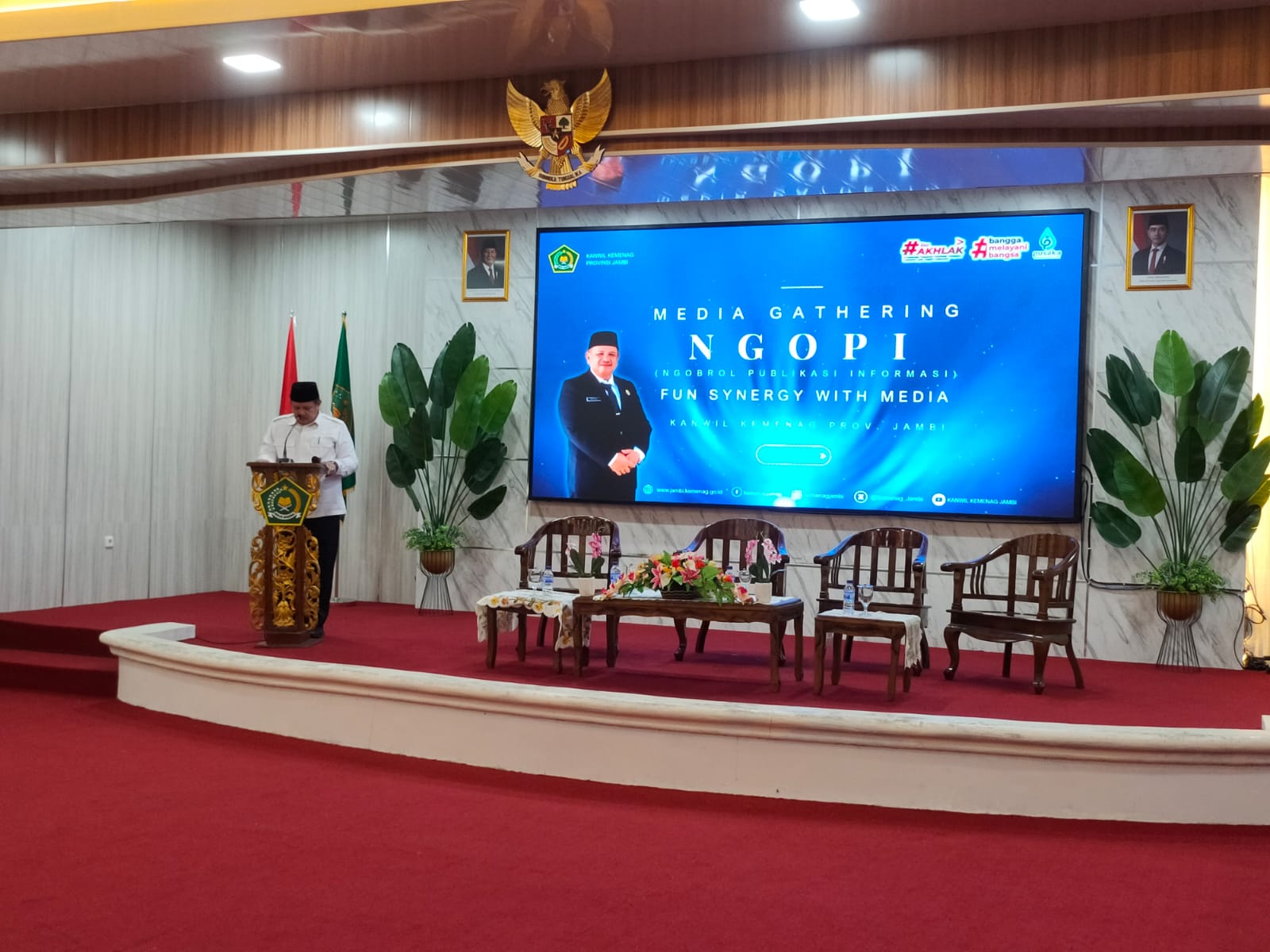 Jambi, 10 Desember 2024 – Dalam upaya meningkatkan sinergi dengan media dan memperkuat publikasi informasi, Kanwil Kementerian Agama Provinsi Jambi mengadakan Media Gathering bertajuk "NGOPI (Ngobrol Publikasi Informasi) Fun Synergy With Media". Kegiatan yang berlangsung di Aula Kanwil Kemenag Provinsi Jambi ini dibuka langsung oleh Kepala Kanwil, Dr. H. Mahbub Daryanto, M.Pd.I.