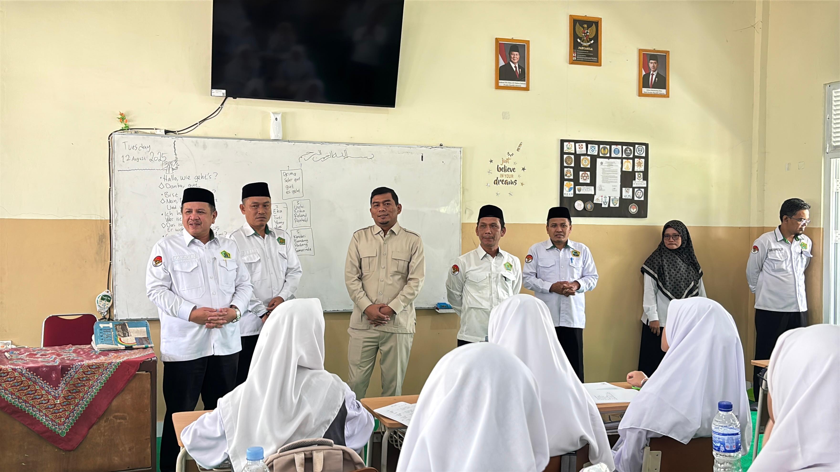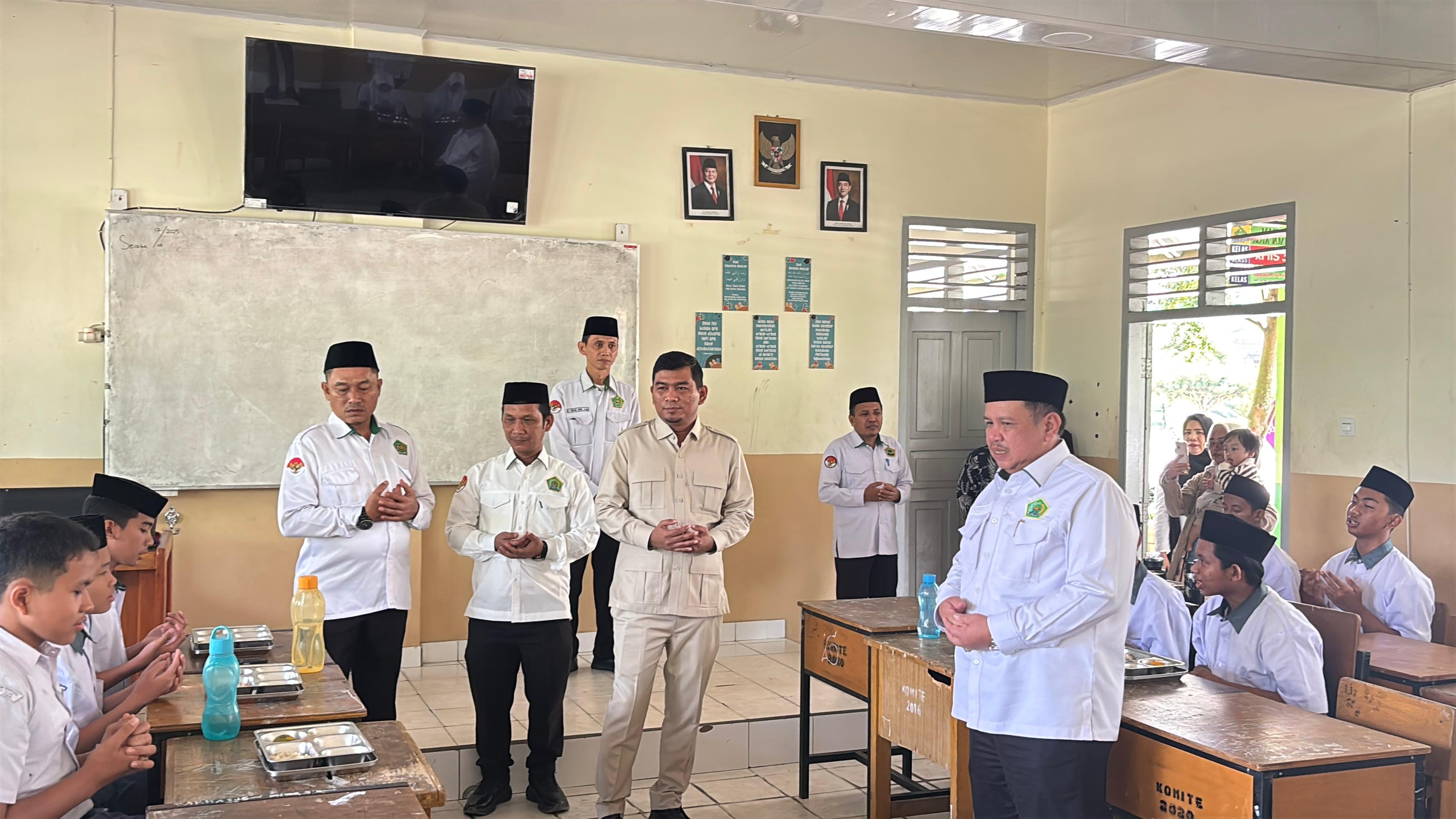Jambi, 12 Agustus 2025 — Anggota DPR RI Rocky Candra meninjau langsung pelaksanaan program Makan Bergizi Gratis (MBG) di MAN 2 Kota Jambi, Selasa (12/8/2025). Dalam kunjungan tersebut, Rocky didampingi Kepala Kantor Wilayah Kementerian Agama Provinsi Jambi, Mahbub Daryanto, untuk memastikan program berjalan sesuai sasaran sekaligus menyerap aspirasi pihak madrasah.