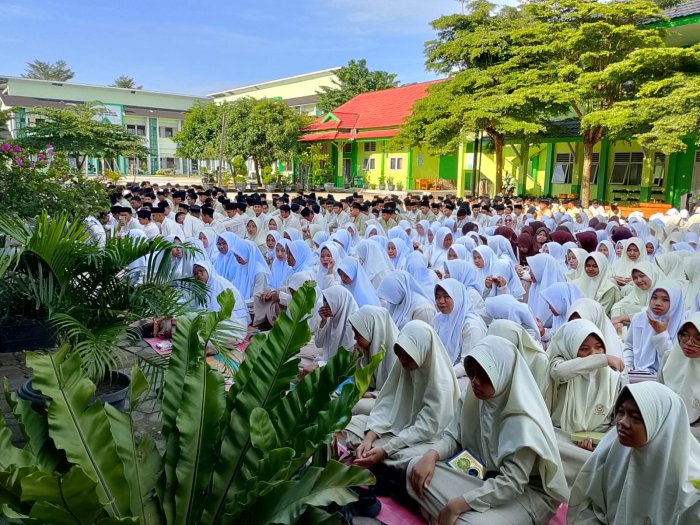 Kota Jambi – MAN 2 Kota Jambi kembali menggelar kegiatan Yasinan rutin pada hari Jum’at (19/9/2025) yang dipimpin oleh petugas dari kelas XI F12. Kegiatan ini berlangsung khidmat dengan lantunan ayat suci Al-Qur’an yang dibacakan bersama-sama oleh siswa, guru, dan seluruh warga madrasah.