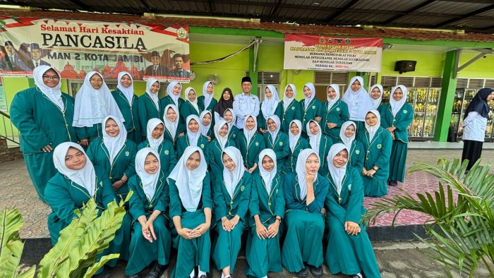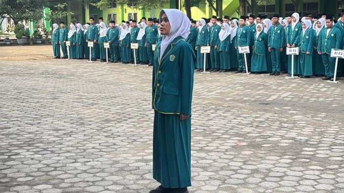 Kota Jambi - Siapa bilang hujan bisa melunturkan semangat para siswi MAN 2 Kota Jambi? Kelas XII IIS 4 membuktikan sebaliknya! Setelah latihan intensif di bawah gerimis beberapa hari sebelumnya, akhirnya mereka berhasil melaksanakan tugas sebagai petugas upacara bendera dengan baik pada Senin, 13 Oktober 2025.