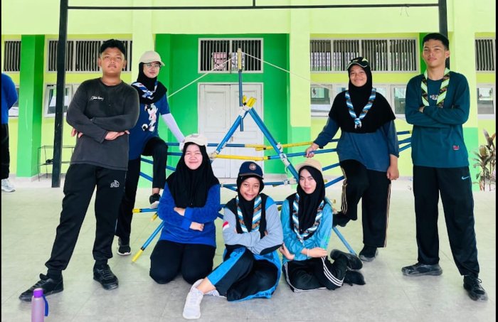 Kota Jambi - Pagi hari nan cerah, lapangan MAN 2 Kota Jambi tampak dipenuhi semangat para anggota Pramuka Ambalan Sunan Kalijaga – Cut Nyak Dien yang tengah melaksanakan latihan rutin. Kegiatan yang berlangsung sejak pagi ini difokuskan pada materi pioneering, salah satu keterampilan dasar dalam kepramukaan yang melatih kemampuan siswa dalam membuat berbagai konstruksi menggunakan tongkat dan tali.