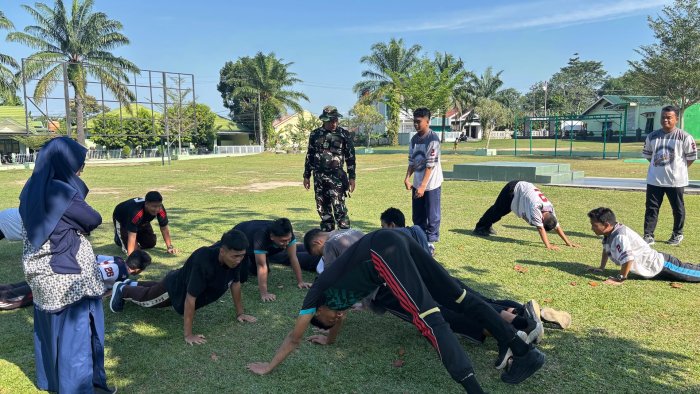 Kota Jambi — Suasana pagi di Kodim 0415 Kota Jambi, Sabtu (1/11), tampak berbeda dari biasanya. Lapangan yang biasanya dipenuhi oleh prajurit kini dipadati oleh para siswa kelas Excellent MAN 2 Kota Jambi, yakni kelas X E1 dan XI F1, yang tengah mengikuti kegiatan Kesamaptaan. Didampingi oleh wali kelas masing-masing, mereka menjalani serangkaian latihan fisik yang menantang seperti sprint, push up, dan pull up di bawah arahan pelatih dari Kodim 0415.