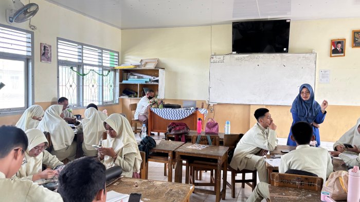 Sementara itu, Tasya Putri Ramadanti menyoroti bagian materi yang paling berkesan baginya: “Ibu Pudya menjelaskan unsur dan tabel periodik bagi saya menarik. Tadi kami juga mengisi lembaran kerja. Dengan itu kami dapat memahami dan membedakan unsur yang bersifat logam, unsur yang konduktor dan isolator, serta metaloid.”