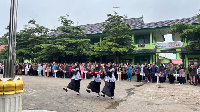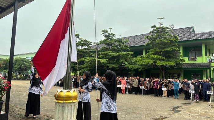 Kota Jambi — Prosesi pengibaran bendera Merah Putih pada Upacara Peringatan Hari Guru Nasional 2025 di halaman MAN 2 Kota Jambi berlangsung dengan penuh kehormatan dan keteduhan suasana. Ketika komando diberikan, seluruh pasang mata tertuju pada trio pengibar yang terdiri atas Frischa Aulia, S.Pd., sebagai pembentang bendera; Syafira, S.Pd., sebagai pembawa bendera; dan Sukmawati, S.Pd., sebagai pengerek bendera — tiga sosok pendidik yang dipercaya mengemban tugas mulia mengibarkan Sang Saka Merah Putih pada momentum istimewa ini.