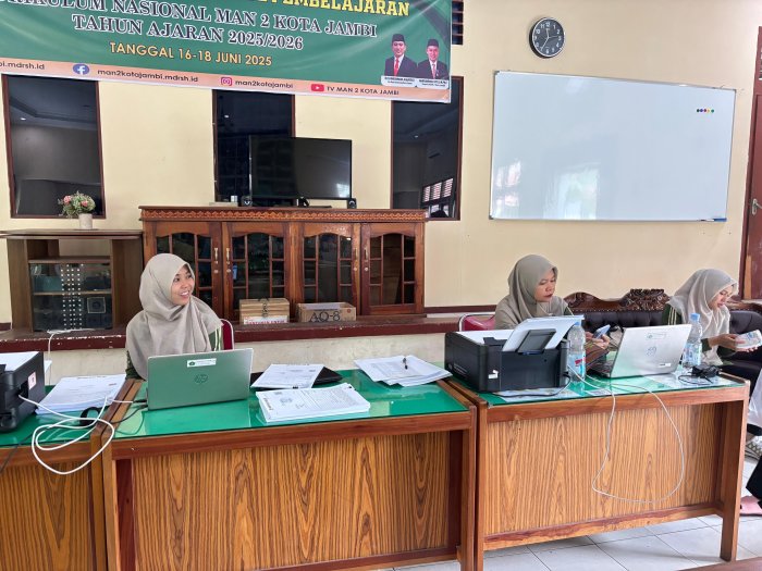 Bertempat di lingkungan MAN 2 Kota Jambi, proses pencetakan rapor digital berlangsung dengan tertib dan terkoordinasi. Tim kurikulum bekerja secara intensif untuk memastikan seluruh data capaian hasil belajar siswa telah terinput dengan benar, tervalidasi, serta siap disajikan dalam bentuk rapor resmi madrasah. Kegiatan ini juga menandai komitmen madrasah dalam mengoptimalkan pemanfaatan teknologi digital pada sistem penilaian dan administrasi akademik.