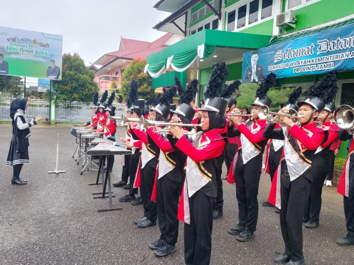 Kota Jambi – Upacara Peringatan Hari Amal Bhakti (HAB) ke-80 Kementerian Agama Republik Indonesia tingkat Provinsi Jambi berlangsung khidmat dan semarak di Lapangan Kantor Wilayah Kementerian Agama Provinsi Jambi pada Sabtu, 3 Januari 2026. Kegiatan tersebut diikuti oleh jajaran pegawai Kementerian Agama, perwakilan instansi vertikal, serta undangan dari berbagai satuan pendidikan di bawah naungan Kemenag.